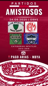 El domingo 24 de agosto se realizó un encuentro amistoso de futbol categorías infantiles, bajo la organización del Sr. Osvaldo Carballo este importante evento se organizó en Pago Arias en el predio de Hugo Cardozo, donde además de los anfitriones participaron equipos de Concepción, Mburucuya y Santa Rosa.
