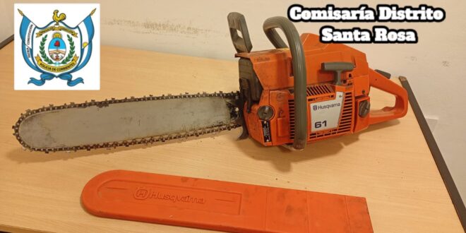 Comisaría distrito de Santa Rosa informa que en la víspera, un ciudadano, se apersonó en el recinto de la guardia, dónde denunció la sustracción de su motosierra marca «HUSQVARNA 61». Por ello, la prevención policíal, comenzó una exhaustiva investigación para dar con los autores del hecho y proceder a la recuperación del elemento denunciado como sustraído.