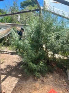 Primeramente irrumpieron en una casa donde hallaron dos plantas de cannabis sativa en planteros, en tanto que la pesquisa policial condujo a ubicar otros dos lugares con más vegetales de similares características.
