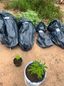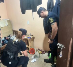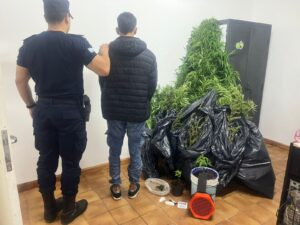 Tras estas pesquisas, se solicitaron las órdenes de allanamiento al juzgado de garantía de Santa Rosa y al ingresar a la finca, se logró el secuestro de varias plantas de marihuana, de distintas especies, de más de dos metros de alturas, quienes se hallaban plantadas y otras tantas en proceso de disecado.