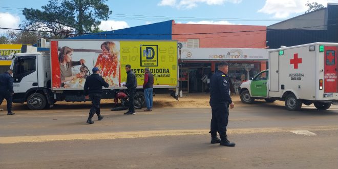 GRAVE SINIESTRO VIAL EN SANTA ROSA. Una mujer resultó herida tras ser atropellada por una moto y chocar contra un camión en la Ruta 118